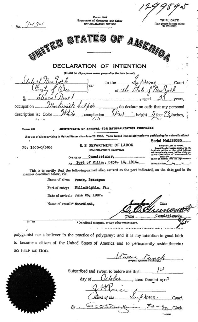​Stephen petitioned for naturalization and received his citizenship on October 1, 1912.